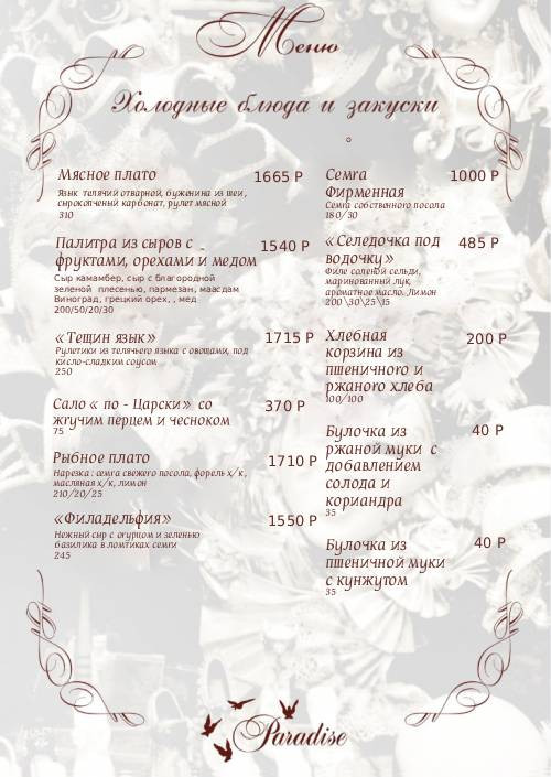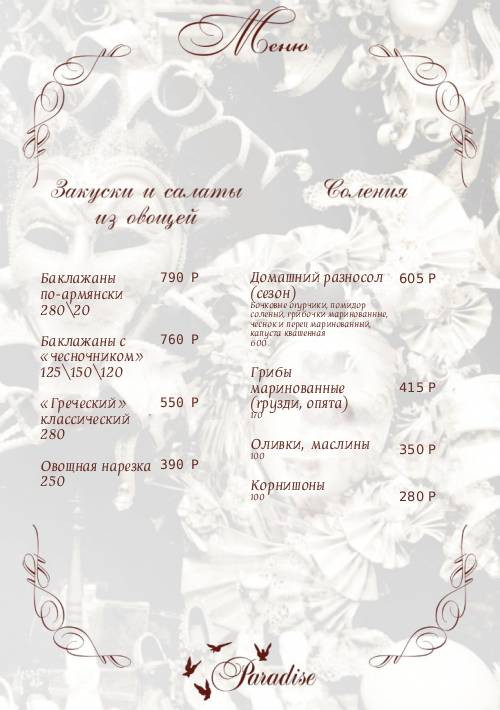 Банкетное меню